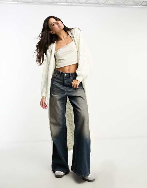 Asos Design Chunky Cable Knit Longline Cardigan In Cream Asos